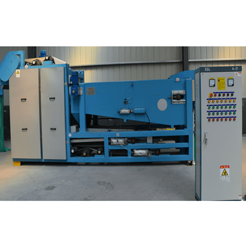 本設備是我公司引進、消化、吸收芬蘭現金技術研制生產的新一代專利脫水設備,它具有處理能力大,脫水效率高(從進漿濃度0.8-3%可直接提高至28-35%以上),能耗低等優點,它不僅解決了傳統普通雙網壓濾機對原料脫水時所出現的跑料問題,同時也解決了網兩端料壓力較小的問題,由于最新機型有預脫水網,泥水自然重力脫水區加長了,而且上網不受擠壓,網孔不易被纖維、污泥所堵塞。