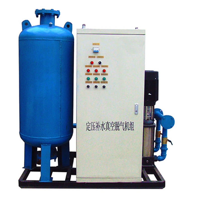 定壓補(bǔ)水脫氣機(jī)組是我公司采用先進(jìn)技術(shù)研發(fā)的實(shí)現(xiàn)集中供熱及空調(diào)系統(tǒng)定壓、膨脹、補(bǔ)水、真空脫氣四位一體的新型設(shè)備。該設(shè)備在系統(tǒng)中起到穩(wěn)壓、自動(dòng)補(bǔ)水、膨脹自動(dòng)泄水,脫除系統(tǒng)內(nèi)游離氣體及溶解氣體等作用。使系統(tǒng)始終處于環(huán)保、節(jié)能的運(yùn)動(dòng)狀態(tài)。 該裝置利用氣壓罐的可調(diào)節(jié)能力,可自動(dòng)調(diào)節(jié)用戶水量的變化,當(dāng)用水量減少或不用水時(shí),可較長時(shí)間不啟動(dòng)水泵,達(dá)到節(jié)能目的。 與水塔、高位水箱相比可節(jié)省投資約40%—60%。該設(shè)備結(jié)構(gòu)緊湊,與其他傳統(tǒng)的供水裝置相比減少了占地面積, 節(jié)省了土地資源。本設(shè)備全自動(dòng)運(yùn)行,無需專人管理,工作可靠。